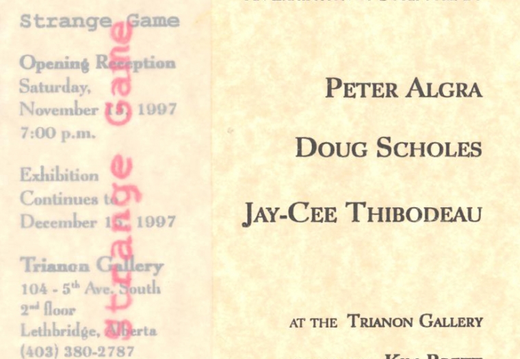 The show consists exclusively of sculpture created by three students from the University of Lethbridge who are in the final stages of their undergraduate education. Peter Algra is a fourth year bachelor of arts student whose major is philosophy. Doug Scholes is a third year bachelor of fine arts student whose concentration is in sculpture. Jay-Cee Thibedeau is a fourth year bachelor of fine arts student whose concentration is sculpture and painting.