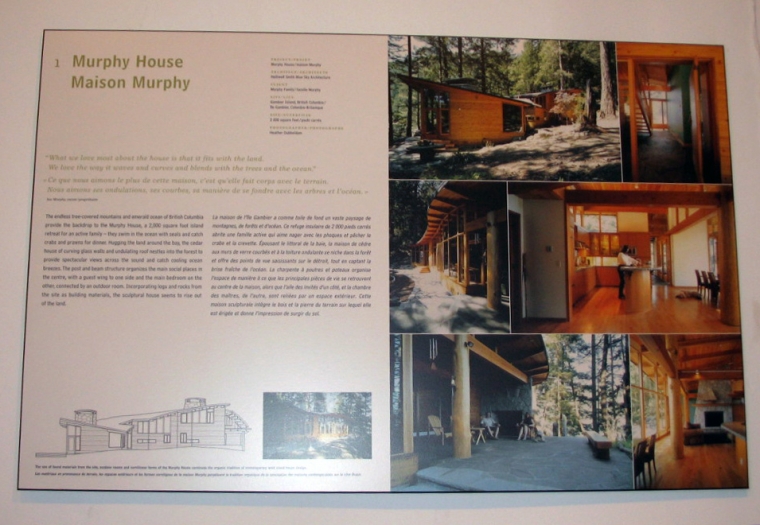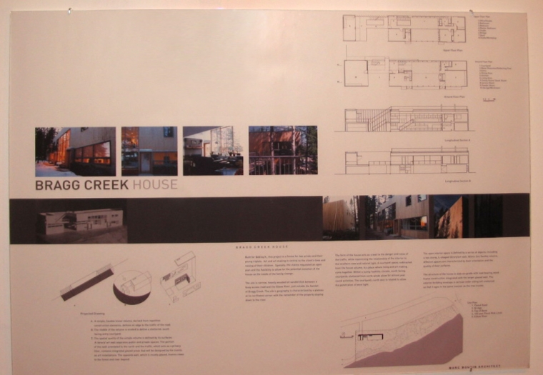 The show recognizes the design process by featuring drawings and models as well as photography of the final product. The exhibition celebrates and acknowledges the work of the following architects; Patkau Architects, Helliwell Smith Blue Sky Architecture, Peter Cardew Architects, Sturgess ArchitectureW.D Fisher Architect, Battersby Howatt, Marc Boutin Architecture, David Penner Architect, Drew Mandel, Martin Liefhebber Architect, Affleck + de la Riva Architects and many others.